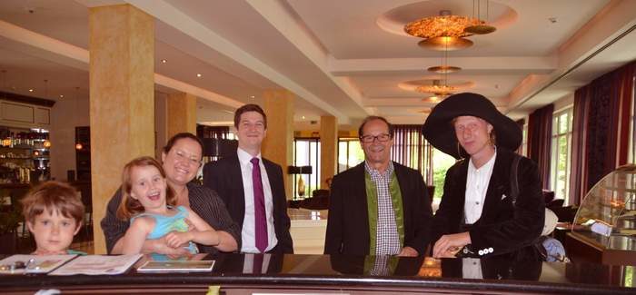 Heute durften wir einen ganz besonderen Gast aus Bamberg verabschieden. Nachdem er unsere Rezeptionsmitarbeiterinnen mit einem tollen Ständchen verzaubert hatte, haben wir dem Wanderszimmermann Johannes Kropf sehr gerne für eine Nacht ein Quartier geboten. Er wünschte uns zum Abschied gute Geschäfte, stets ein Dach über dem Kopf und einen vollen Suppentopf. Außerdem bedankte er sich für Speis und Trank.