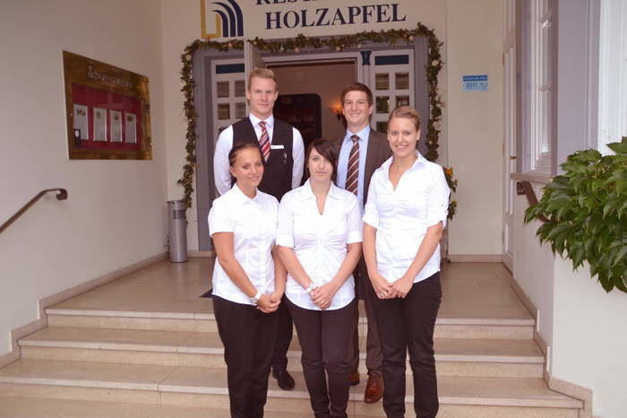 Wir freuen uns ab heute unsere neuen Auszubildenden zur Hotelfachfrau im ersten Lehrjahr begrüßen zu dürfen und hoffen auf eine gute Zusammenarbeit. Den jungen Frauen wurde ein Pate zur Seite gestellt um sich besser in das Arbeitsleben einzufügen. v.l.n.r. Moritz Schmitt (Pate), Yvonne Lehner, Isabelle Sadlowski, Christian Holzapfel und Lisa Grosch.