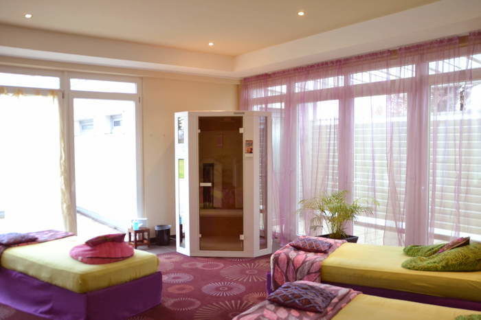 Um unseren Gästen einen noch höheren Komfort bieten zu können, haben wir seit kurzem eine brandneue Physiotherm-Infrarotkabine. Hierbei werden bei ca. 30°C Verspannungen am Rücken gelockert.