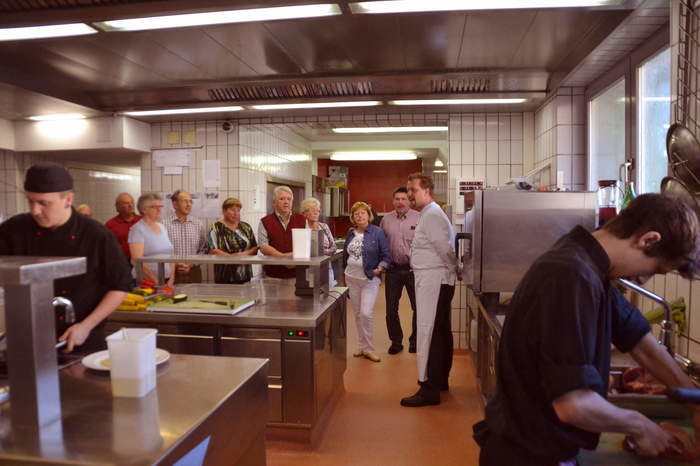 Bei der heutigen Küchenführung durften unsere Gäste den Köchen wieder ihre Tips und Tricks entlocken. Bei einem Gläschen Wein begrüßten Josef Holzapfel und Phil Petelski die Gäste zum Vormittag der offenen Küche.