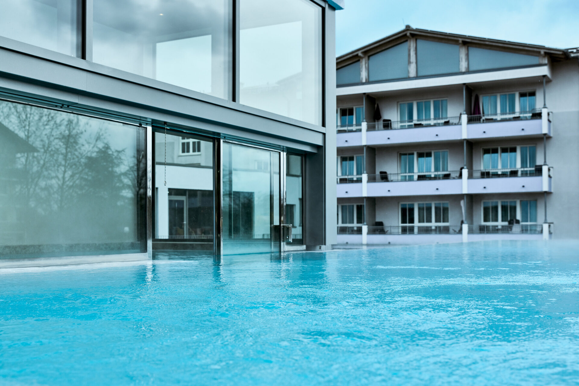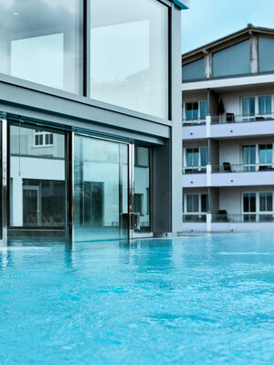Der Skypool im 1. Obergeschoss, das Sportbecken im Garten, sowie die beiden Thermalwasserpools laden zum relaxen ein.